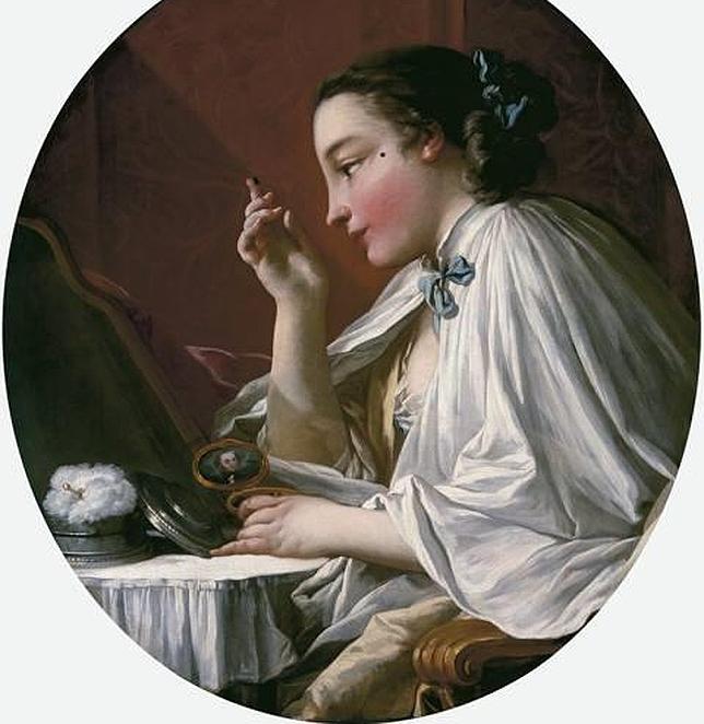 cortesía de p & d colnaghi & co, ltd, londres Boucher está presente en la exposición con varias obras, todas del mismo formado: ovalado. Algunas de las escenas que representa el pintor son muy osadas. En la época quedaban ocultas tras unas cortinas. Hay ejemplos en la exposición, pero no es este el caso. En el siglo XVIII, las damas cuentan con sus «boudoir», que se convierten en sus espacios privados. En la escena de este cuadro apreciamos tanto la vestimenta como el maquillaje, muy exagerado, propios de la época.