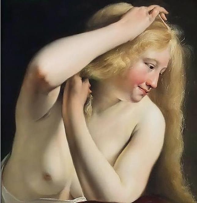 RMN-grand palais. museo del louvre/gérard blot Nació en Ámsterdam, pero muy pronto se trasladó a Haarlem, donde conoció a su Anna, hermana de artistas, con la que casó en 1625. Tuvieron diez hijos. Salomon de Bray pintó este maravilloso desnudo, en el que una joven está peinando su larga y rubia cabellera, ajena a cualquier voyeur que pudiera estar espiándola. Destaca la blanca piel del cuerpo frente a lo sonrosado de su rostro. Con su brazo izquierdo tapa uno de sus senos.