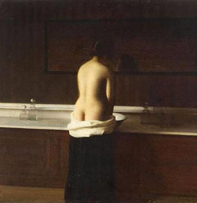 rmn-grand palais/thierry ollivier Eugène Lomont (1864-1938) pintó en 1898 este tan hermoso como enigmático cuadro. No vemos el rostro de la mujer que se está aseando en un cuarto de baño. Tenemos la sensación de estar invadiendo su intimidad, violando su privacidad. Su cuerpo, semidesnudo y de espaldas, es apenas la única fuente de luz en la escena.