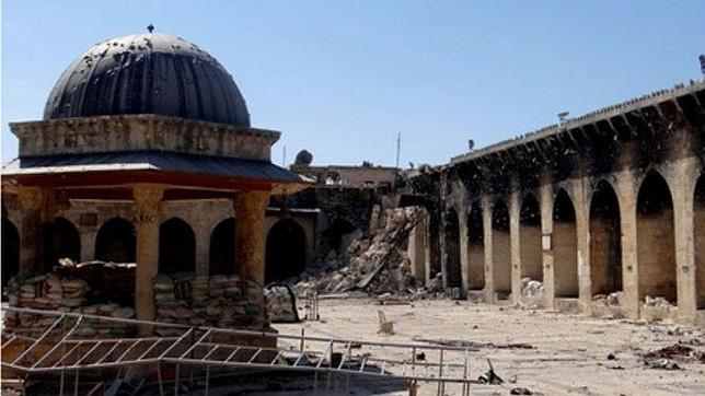 Construcción declarada Patrimonio Mundial originalmente construido en el año 715 por la dinastía Umayyad; la mezquita es considerada una de las más antiguas del mundo. La estructura épica evolucionó a través de épocas consecutivas y obtuvo su famoso minarete a finales del siglo XI. Fue reducida a escombros en la guerra civil siria en 2013; asimismo, sufrió serios daños en los muros y los patios. Los historiadores lo han descrito como el peor daño que el patrimonio sirio ha recibido.