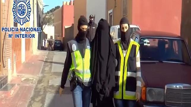 Internet y los teléfonos móviles eran los instrumentos utilizados para reclutar a unas jóvenes que, una vez adiestradas en el radicalismo, eran enviadas a la guerra de Siria en un viaje sin retorno. La Policía desmanteló esta semana una trama que, dirigida desde la localidad marroquí de Castillejos, lanzaba su cebo a las redes sociales en busca de fanatismo. Cuatro mujeres y un hombre fueron detenidos en Ceuta, Melilla y Barcelona, ciudades por las que se extendía una red de reclutamiento yihadista que ya había logrado alistar a doce muchachas, algunas menores de edad. Sometidas a un largo proceso de adoctrinamiento, las jóvenes eran localizadas en internet a través de sus comentarios y sus críticas, visado virtual para entrar en el califato del terrorismo islámico. AFP PHOTO / SPANISH NATIONAL POLICE