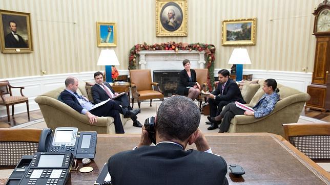 Aunque algo mejor comunicada, Cuba seguirá siendo una isla del pasado en el siglo XXI. Esta semana liberaron a Alan Gross, pero los cubanos son aún prisioneros. Ni una palabra sobre democracia y derechos humanos. De momento, solo gana la familia Castro, que ha aguantado un pulso que arrancó hace más de cincuenta años, y Obama, necesitado de apuntarse un tanto –aunque sea tan dudoso como este– en la escena internacional. La apertura de relaciones diplomáticas entre Estados Unidos y Cuba, rotas durante una Guerra Fría de la que queda como vestigio un régimen comunista con vistas al Caribe, pone fin a una política que, según el presidente norteamericano, ha fracasado. No son de la misma opinión el presidente de la Cámara de Representantes, el republicano John Boehner, que denunció lo que considera una nueva concesión «a una dictadura que brutaliza a su propio pueblo y se alía con nuestros enemigos», o el senador Marco Rubio, que calificó de «inexplicable» la decisión del presidente Obama de «premiar al régimen de Castro». El Papa Francisco y la diplomacia vaticana se han implicado en un deshielo diplomático que pone fin a cinco décadas de aislamiento y que abre una fase en la que los dos países se preparan, como dijo Raúl Castro, para «aprender el arte de convivir con nuestras diferencias». El dictador cubano dejó claro que estas «diferencias» seguirán existiendo en una Cuba ahora que obtiene de Obama un sello de calidad para su régimen totalitario. Lo expresó muy bien Cristina Fernández de Kirchner: «Cuando los pueblos son conducidos por dirigentes que no los traicionan –dijo en Paraná–, llegan a sus objetivos». Más elevado, en su estilo, Obama proclamó que «todos somos americanos». Ayer lo dijo en español. REUTERS/White House/Pete Souza/handout