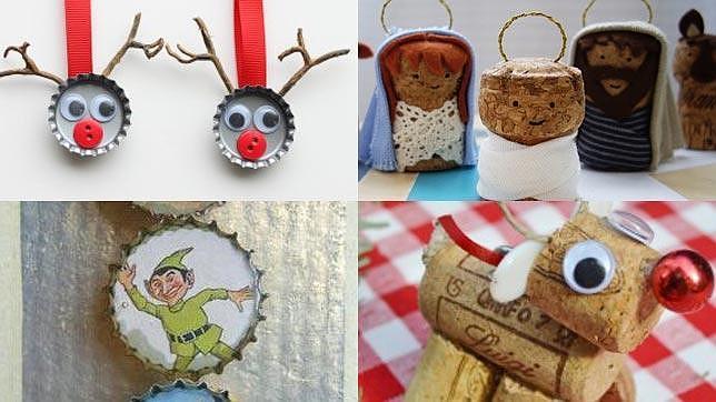 www.blogseitb.com/http://3.bp.blogspot.com/navidad.es/tienecajones.com Usa las chapas de cerveza que no hayan quedado muy dobladas para pegarles un dibujo navideño y ya tienes un colgante para el árbol. Pueden unir varias y colocarlas a modo de espumillón o como guirnalda en algún rincón de casa. Para hacer adornos con corchos, basta con unirlos con palillos de diente y pegamento y añadirle algunos accesorios. Puedes fabricar las figuras del portal de Belén o renos para el árbol.