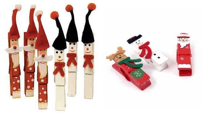 Decora las pinzas de la ropa con purpurina, lana o fieltro y crea divertidos muñecos y animales. Puedes ponerlas en el árbol de Navidad o colocarlas en forma de guirnaldas por toda la casa. También puedes formar una corona para la puerta de casa. Estos adornos quedan mejor con pinzas de madera.