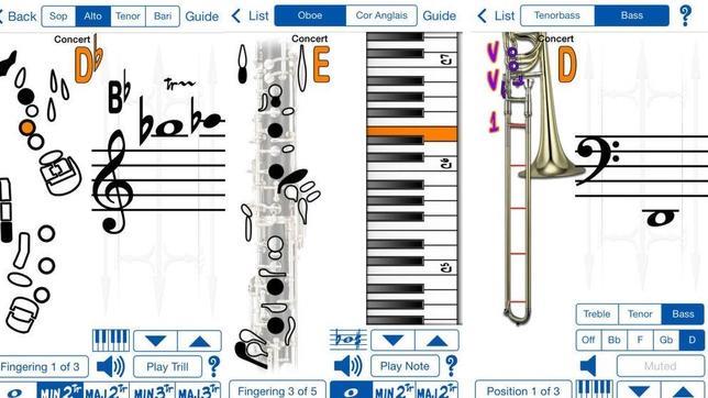 También existen otros tipos de instrumentos. Esta aplicación, disponible para iOS, incluye tablas de digitación para todos los instrumentos de metal y de madera más comunes. Tan solo hay que escoger una nota y se muestra su digitación además de la afinación. En esta herramienta se pueden encontrar más de 1.200 digitaciones para flautas de todas las variedades, oboe, fagot, los saxofones, trompetas o trombones.