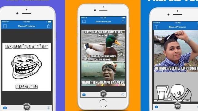 Para el sistema operativo iOS (iPhone y iPad) existen otras cuantas aplicaciones para crear «memes». Una de ellas es « Meme Producer», que permite crear estos simpáticos montajes con más de una imagen o elegir entre una gran colección de «memes» populares o escoger de tus propias imágenes. Se pueden cambiar los subtítulos con un solo toque y ocupar mas de una línea de texto.