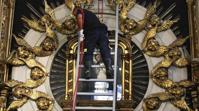 La parte más litúrgica de la fiesta se representa actualmente con la procesión de la virgen. El lienzo de la Paloma se coloca en una carroza adornada con claveles de colores y es llevada a hombros por los bomberos de la ciudad. El recorrido es prácticamente igual todos los años, pasando por algunos de los rincones más famosos del barrio de la Latina, como la calle Toledo, la plaza de la Cebada o la Basílica de San Francisco el Grande. La procesión tiene algo distinto al resto de las que se celebran en España, no sólo porque son los bomberos los encargados de descolgar y transportar la imagen sino porque aquí los chulapos madrileños compiten en desparpajo por regalar a la virgen los piropos más originales y divertidos.