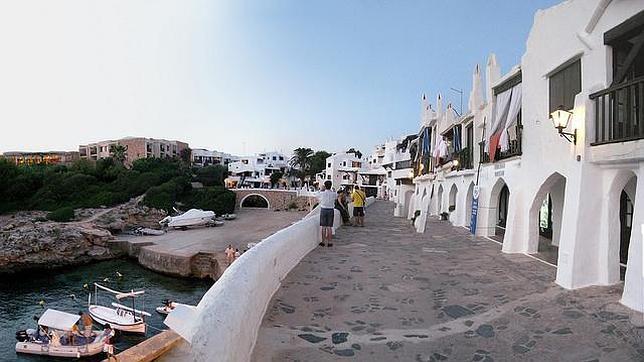 montannito Cales Coves debe su nombre a las numerosas cuevas que sirvieron de vivienda a los antepasados de los menorquines. Ahora las grutas prehistóricas se mezclan con modernas urbanizaciones. Allí se encuentra la cueva del Xoroi, con una bella leyenda. Hoy la cueva es restaurante y sala de fiestas, pero el impresionante acantilado y el mar azul siguen siendo los mismos que hace siglos. Al lado queda el bello pueblo marinero de Binibeca -se creo en 1972- , uno de los más turísticos de la isla, con numerosos restaurantes y una muy típica arquitectura de encaladas casas con estrechas callejas y recoletas placitas. En el puerto las barcas, tan nuevecitas, parecen más destinadas a la foto que a navegar. Al mediodía las calles, vacías hasta entonces, se llenan de turistas ávidos de compras y resulta difícil coger sitio en las mesas de los restaurantes.
