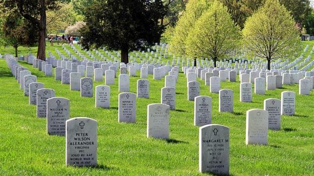 wikipedia Sembrado de blancas lápidas, iguales todas ellas, el cementerio militar de Arlington es un trozo de de la Historia de Estados Unidos y en él descansan los veteranos de todas las guerras, desde la Guerra de Independencia de los Estados Unidos hasta las acciones militares en Afganistán e Irak.