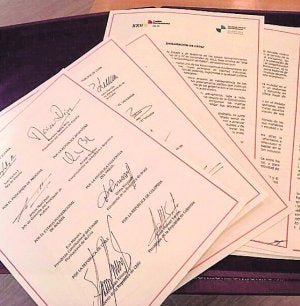 1. Subscribimos los acuerdos alcanzados en la XIV Reunión Iberoamericana de Ministros de la Presidencia y Equivalentes (RIMPE), la I Reunión de Ministros Iberoamericanos de Fomento, la VIII Conferencia Iberoamericana de Ministros de Empleo y Seguridad Social, la XXII Conferencia Iberoamericana de Educación, la XV Conferencia Iberoamericana de Cultura, la Reunión de Alto Nivel de Asuntos Económicos, la I Reunión Iberoamericana de Ministros de Interior y de Seguridad Pública y la I Conferencia Iberoamericana de Ministros de Industria y Responsables de la Pequeña y Mediana Empresa, incluidos en sus correspondientes Declaraciones; y adoptamos la Carta Iberoamericana de la Transparencia y el Acceso a la Información Pública y la Carta Iberoamericana de la Micro, Pequeña y Mediana Empresa, provenientes de dos de esas reuniones.