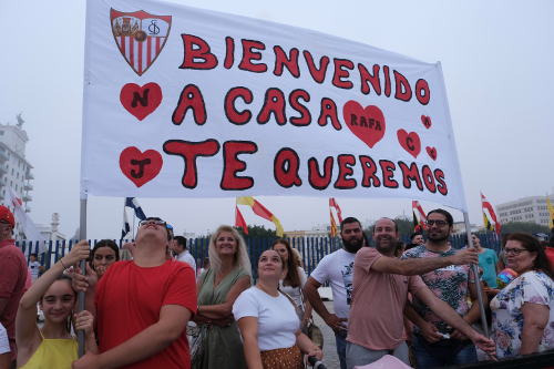 Además del amor conyugal, el amor familiar se dejaba sentir en el muelle. Padres y hermanos gritaban como los primeros al reconocer a quienes se habían ido seis meses antes. Entre ellos estaba la familia Carrascosa, llegada de Cartagena para recibir a Sergio, al que jugando el baloncesto le pusieron el mote de ‘Carras’. Para recibirlo, un contingente de mujeres en el que estaban su abuela («no sabe que va a venir, se va a llevar un sorpresón»), sus hermanas, su sobrino («decía que no quería ver a su ‘titi’ porque iba a llorar mucho») y, sobre todo, su madre, Dori Bernal, que se emocionaba al pensar en el cercano reencuentro. «Se fue siendo un niño y ha vuelto hecho un hombre. Hace unos días me dijo mamá, cuando llegue, grita fuerte para que sepa que estás ahí». no hace falta decir que el abrazo que se dio la familia en el reencuentro fue de película. Y el sobrino, también lloró.