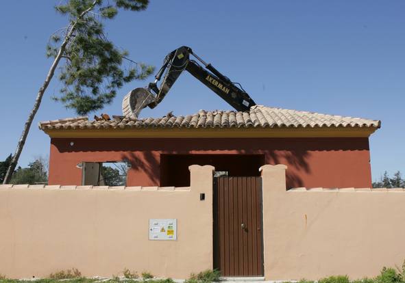 Foto 1 de 10: Derribo de una casa ilegal en Chiclana. Fuente: Román Ríos. 13/03/2009