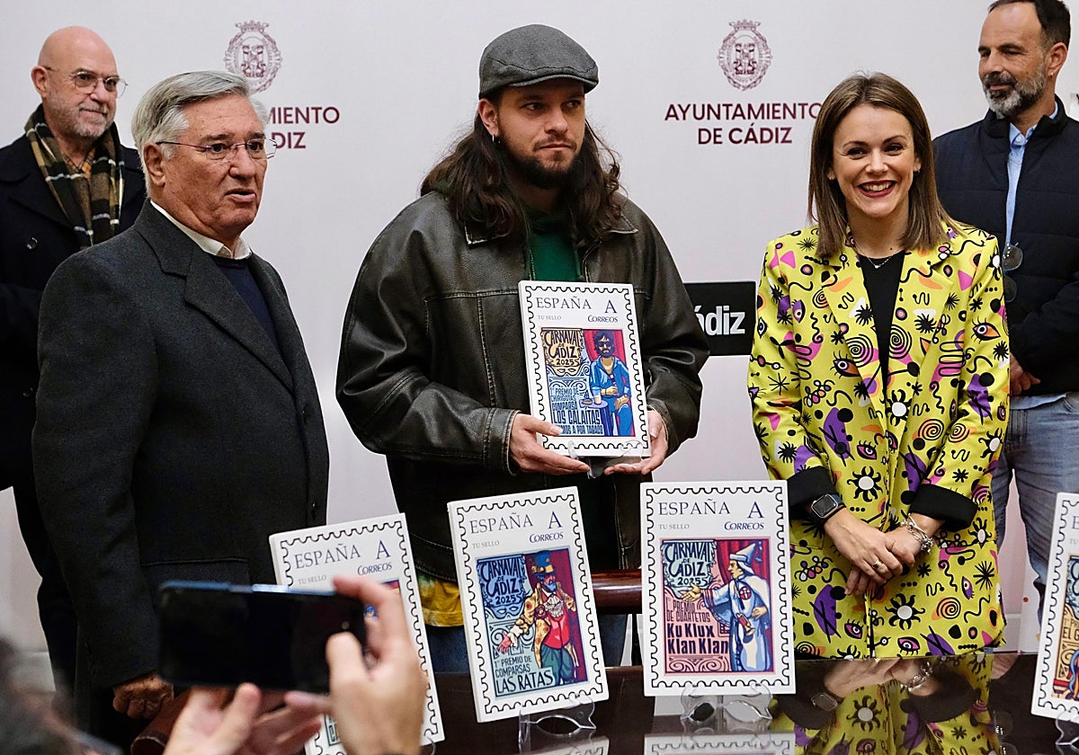 Fernando Benítez ha sido el autor de estos sellos en los que se ha reproducido la imagen del coro 'El Gallinero', la comparsa 'Las ratas', el cuarteto 'Ku Klux Klan Klan', la chirigota 'Los calaíta' y el romancero 'Camina o revienta'.