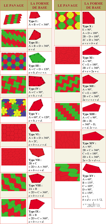 No termina aquí la historia, ya que el decimocuarto tipo de baldosa pentagonal fue descubierto por Rolf Stein en 1985 y hace un año se podía leer que desde entonces no se han encontrado más (todavía hay muchos lugares en internet que describen sólo los catorce tipos conocidos hasta ese momento , como este archivo de Geogebra).