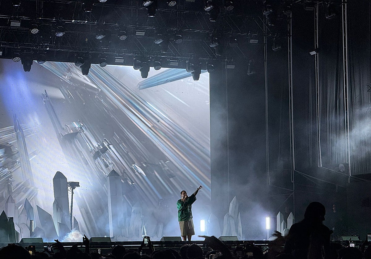 Solo y rodeado de lo que parecían cristales, Cruz Cafuné comenzó con 'la raíz d€l mal' antes de dar paso a uno de sus himnos: 'Mina el Hammani', uno de esos temas con los que pegó un salto al estrellato y se posicionó como uno de los nombres propios del panorama de la música urbana. Él fue uno de los primeros canarios en poner al archipiélago en el mapa y, de esa forma, logró abrir un camino que después recorrieron artistas como La Pantera, Juseph o el propio Quevedo.