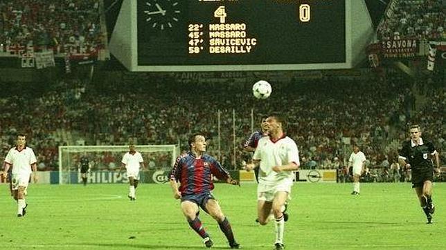 El estadio Olímpico de Atenas acogió uno de los momentos más duros de toda la historia del Barcelona. El «Dream Team» murió ahí, después de cuatro años gloriosos. Los azulgranas accedieron por la puerta grande a la final y se sentían imparables. El Milán de Capello, en cambio, trabajó a destajo hasta el día del partido sin hacer ruido y acabó pasando literalmente por encima del Barça, impotente ante la superioridad física y mental de los milanistas. Aquella derrota por goleada supuso el fin de una era. A partir de aquel día, el «Dream Team» se desintegró poco a poco, empezando por Zubizarreta, despedido por Cruyff en el mismísimo autocar de vuelta a Barcelona.