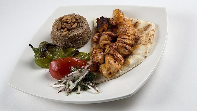 Por 25 euros, ofrece una selección de seis entrantes para compartir, donde destacan el hommos, una crema de garbanzos con salsa de sésamo, limón y aceite de oliva virgen extra; y el Muhammara, homóloga de de pimientos rojos, nueces y esencia de granada. Además, puedes elegir entre siete platos para el segundo tales como el Shish Tauk, una brocheta de pollo macerado en la salsa del chef y cocinado al carbón.