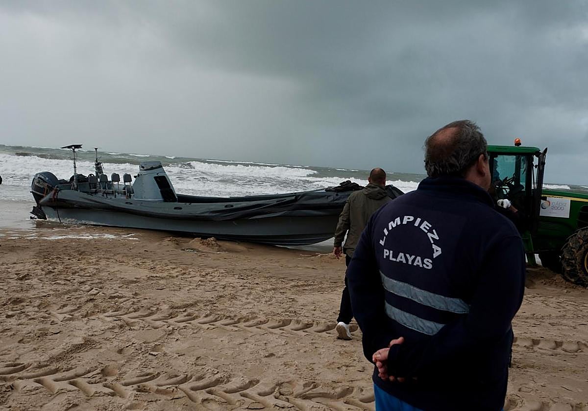 La semirrígida ha quedado abandonada en ese lugar bien por el mal tiempo o por alguna avería lo que evidencia una vez más el narcotráfico activo en la costa gaditana pero a su vez se trata de una señal de cómo los traficantes aprovechan el mal tiempo para abandonar embarcaciones, o para refugiarse cuando el mar se vuelve peligroso. De hecho, en estos días de temporal ya se han avistado varias embarcaciones en busca de refugio.