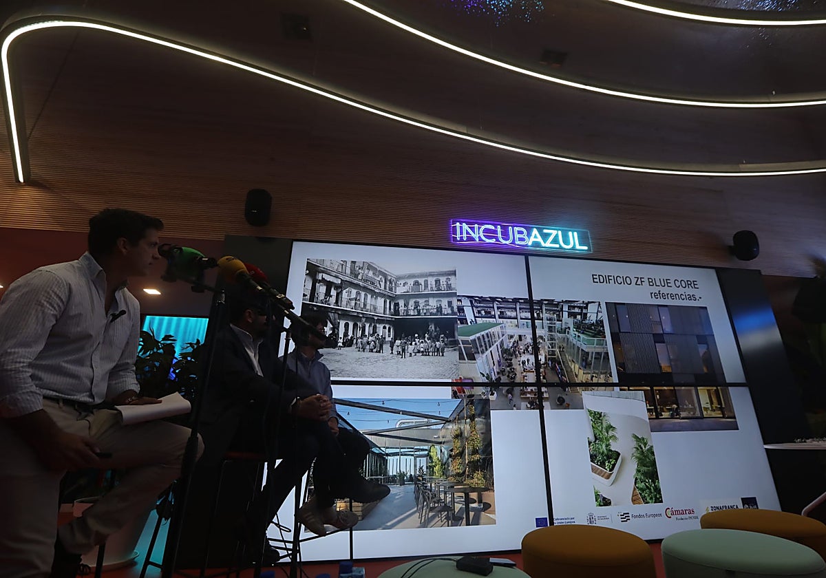La presentación, celebrada en el recién inaugurado edificio Zona Base Incubazul, construido con contenedores marítimos reciclados, ha estado presidida por el delegado del Estado en la Zona Franca, Fran González, acompañado por los arquitectos Jaime Torres Cano y Javier Muñoz Godito, autores de los dos proyectos arquitectónicos.