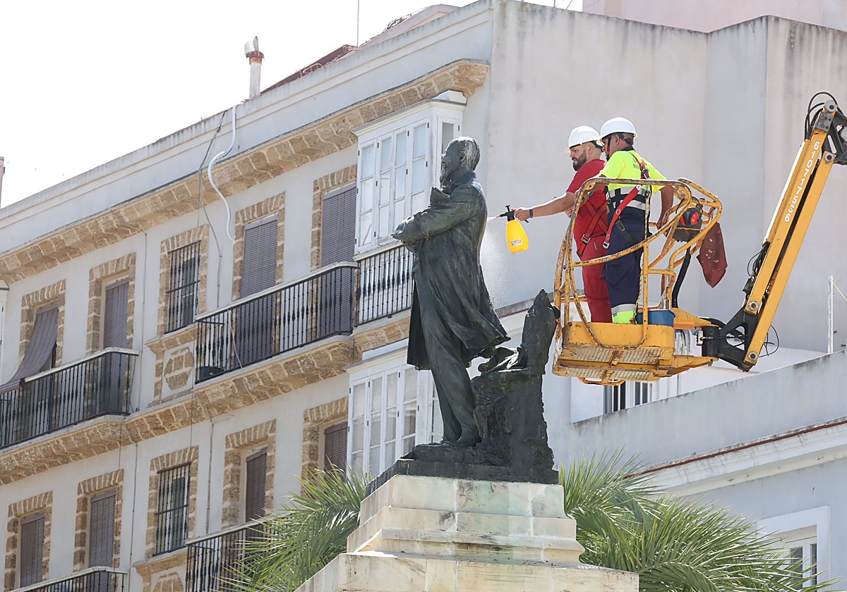 El Ayuntamiento de Cádiz ha iniciado este lunes los trabajos de limpieza y conservación del monumento a Segismundo Moret, situado en la plaza de San Juan de Dios.