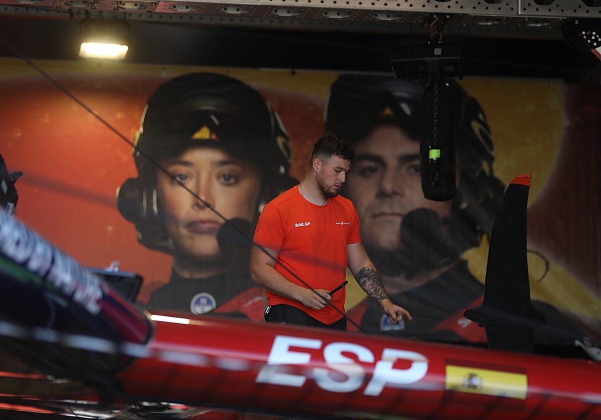 En la carpa del combinado español, liderado por los atletas Diego Botin y Florian Trittel, el F50 de 'Los Gallos' se ponía a punto. Y mientras lo hacía, el equipo nacional ha sobrevolado las aguas de la Bahía de Cádiz, en una primera instancia, a bordo del australiano. En este sentido, cabe destacar que todas las embarcaciones son idénticas, de modo que son la maestría de los tripulantes y la dirección de los equipos las que deciden el resultado de las pruebas.