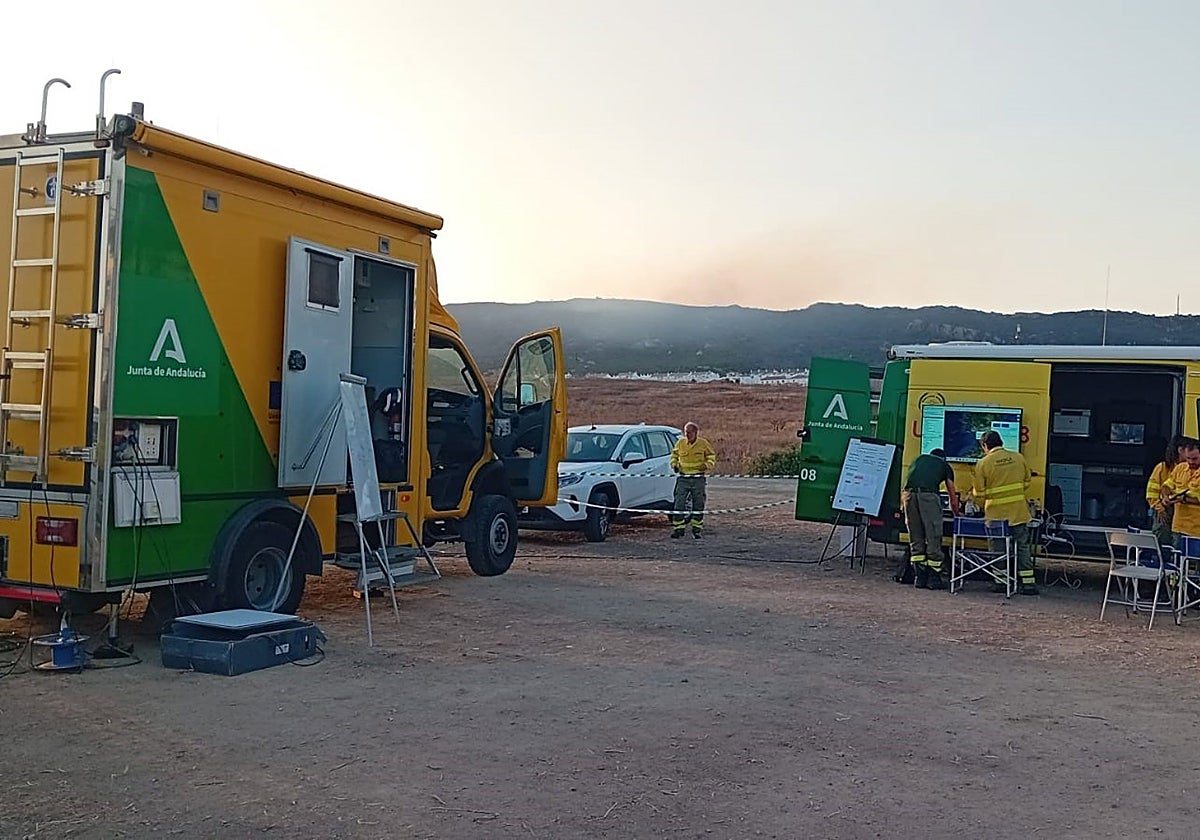 Cuatro medios áreos --un vehículo ligero, dos anfibios y uno de coordinación-- se incorporan desde primeras horas de la mañana de este martes a la zona del incendio declarado en Tarifa este lunes, en situación operativa 1, que ha obligado al desalojo de miles de personas. Los desalojados no han podido volver a sus casas aún. El incendio no ha provocado daños personales y los servicios de extinción han logrado proteger tanto las viviendas como las urbanizaciones de la zona de Atlanterra.