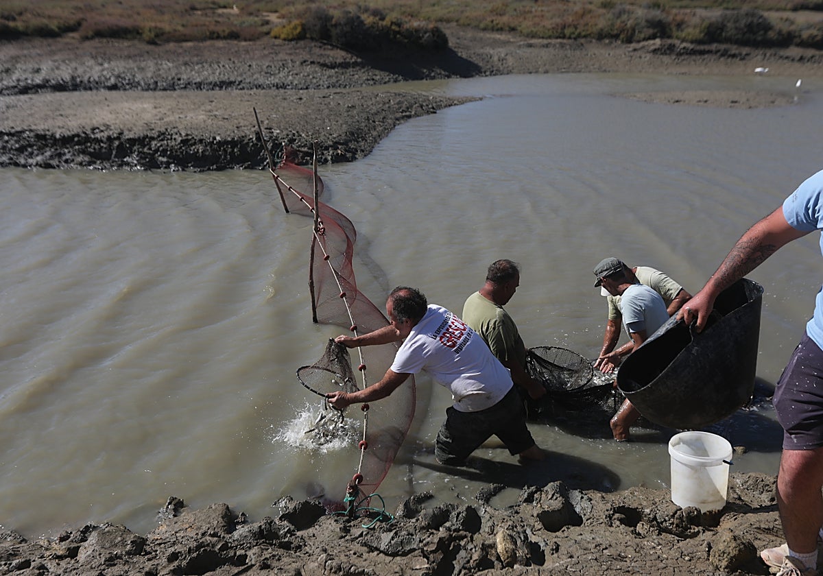 El pescado que sale de las redes ante de decenas de personas entró en el laberinto de esteros y compuertas entre los meses de marzo y abril. La marea los trajo, y una red permite que el agua se renueve sin que puedan escapar. Los peces se crían y crecen en los esteros hasta que estos se vacían para ser poco a poco acorralados por la red, llamada copo, que sujetan entre varios pescadores. Los ejemplares intentan saltar para evitar su destino, pero es inútil. Los asistentes se quedan boquiabiertos con la destreza con la que lanzan los copos y los arrastran por el estero hasta llenarlos de ejemplares. Las piezas salen del estero para automáticamente ser cocinadas y emplatadas. Más fresco, imposible.