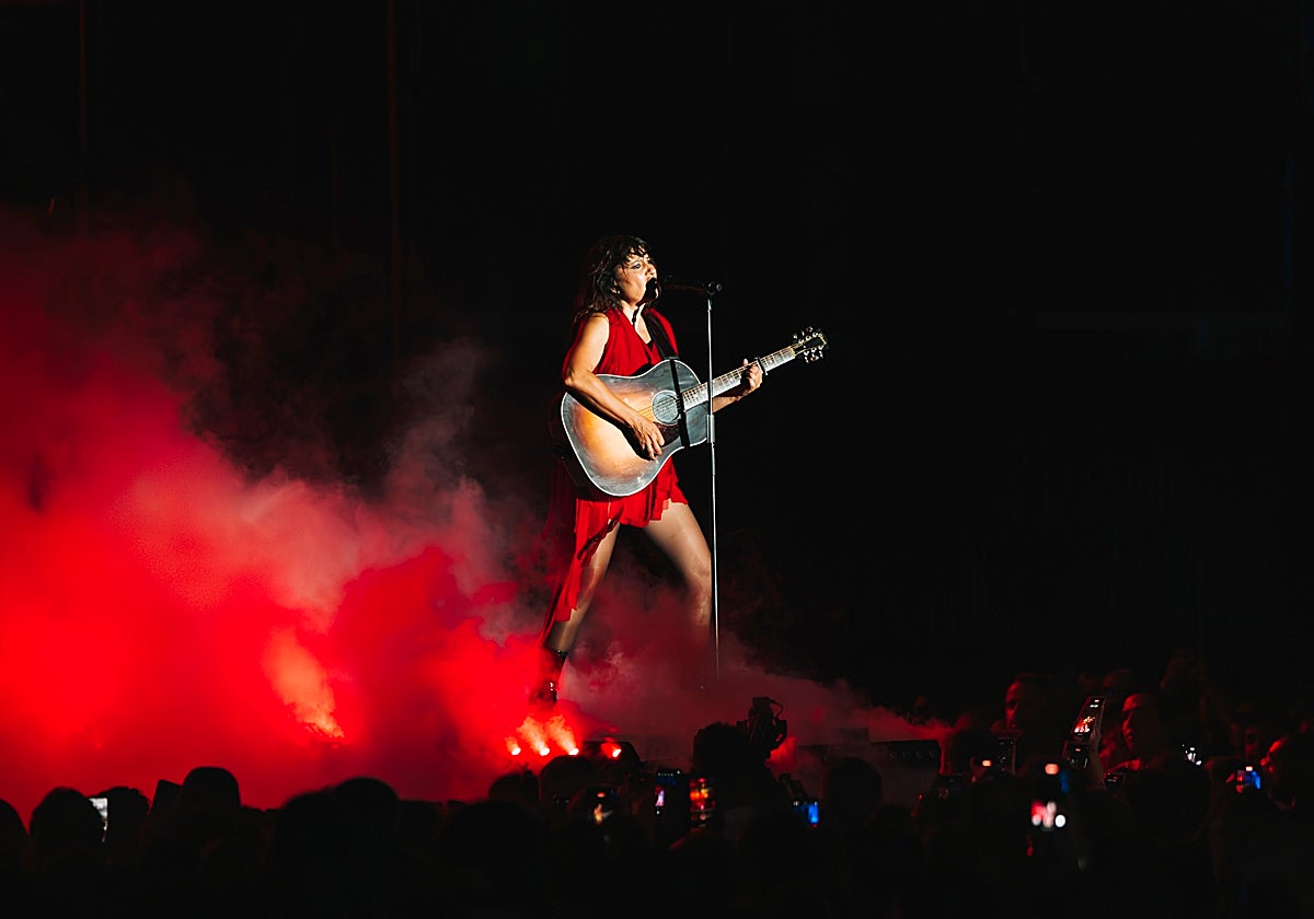 En torno a 5.000 personas abarrotaron el recinto y se entregaron desde el principio al espectáculo. Eva Amaral sobre un escenario es magnética, te atrapa con sus movimientos y con su voz mientras ella sonríe y se divierte.