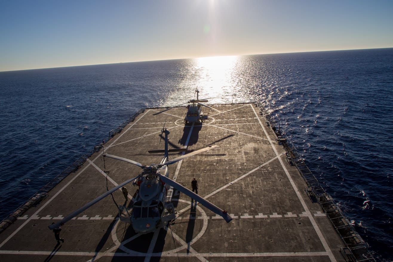 Tras el amanecer, el sonido característico de los rotores rompía la calma de la noche. Dos helicópteros SH-60 de la Flotilla de Aeronaves alzaban vuelo desde la cubierta del Galicia, saludando con un último giro sobre el buque antes de dirigirse a la base aérea. Eran las últimas maniobras antes del atraque definitivo.