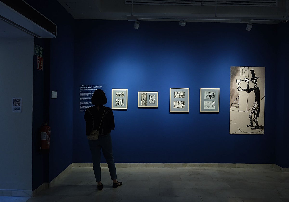 El recorrido expositivo reúne una selección de casi un centenar de dibujos originales, algunos inéditos o conservados en colecciones privadas, que permiten apreciar la evolución de su trazo y su particular visión del mundo, ha reseñado Fundación Cajasol.