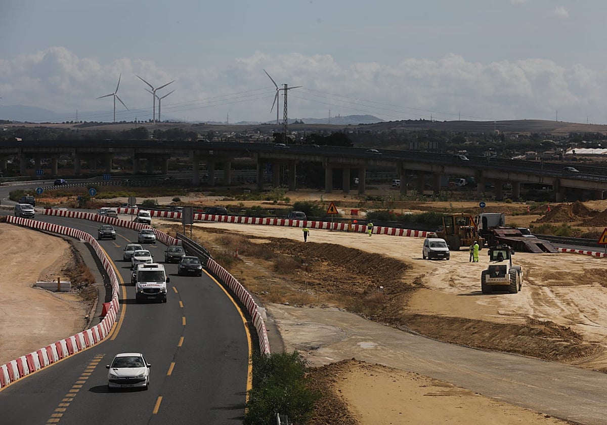 Después de casi 20 años de tramitación del proyecto técnico, marcados por cambios de gobierno y los correspondientes retoques hasta quedar aprobado el definitivo, el desenredo del nudo de Tres Caminos cada vez parece estar más cerca. Las maquinarias de la empresa adjudicataria —la UTE formada por la Compaía General de Construcción Abaldo SA y Vías y Construcciones SA— continúan con las labores de acondicionamiento del terreno y una de las tres estructuras planteadas, el paso superior sobre la A-48 que servirá para habilitar la entrada a Chiclana, ya está erguida.