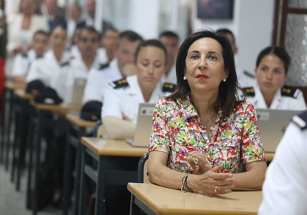Un total de 337 alumnos, de los que 56 son mujeres, formarán parte este año de la 89ª promoción en la Escuela de Suboficiales de la Armada en San Fernando. En las instalaciones de este edificio histórico, en las que se han formado los marinos españoles desde 1798, la titular de Defensa ha visitado un aula en la que ha podido departir con los alumnos sobre el papel de España en las misiones internacionales, como la de Líbano o la Policía Aérea del Báltico, entre otras.