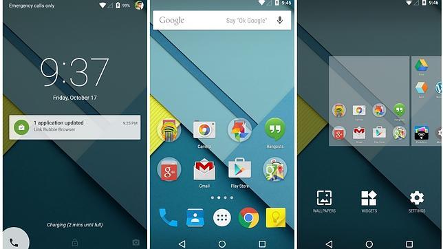 La última versión, Android M, llegará sin grandes cambios estéticos, pero ahondará en nuevos privilegios y servicios. Entre algunas características nuevas, el sistema operativo mejora la duración de la batería y simplifica los permisos de las «apps» para, de esta forma, facilitarte el proceso cuando tengas que decidir la información que éstas pueden usar en tu teléfono.