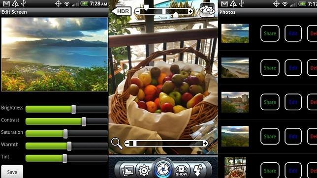Disponible por 1.51 euros, esta «app» extiende el rango dinámico de la cámara y produce buenos resultados. Proporciona un modo automático y otro manual. Destaca tres velocidades de captura de imágenes, zoom y herramientas de balances.