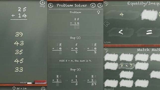 Esta herramienta, muy personalizable, está muy orientada a niños en edad escolar. Comienza con operaciones (sumas y restas) simples, subiendo de nivel (multiplicación y división) para mejorar el aprendizaje. Tiene una interfaz muy singular, puesto que emula a una pizarra de tiza tradicional. Está disponible para iOS. Otra similar se puede utilizar en dispositivos Android.