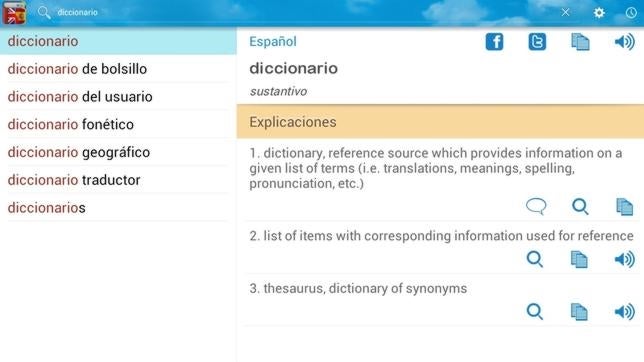 Además, incluye múltiples posibilidades de consulta, ya sea por formas, sin acentos, diéresis, mayúsculas, palabra aproximada, además de contar con unos 80.000 artículos y un registro de los verbos conjugados. De esta manera, los alumnos pueden practicar y mejorar su aprendizaje. Está disponible para Android, iOS.