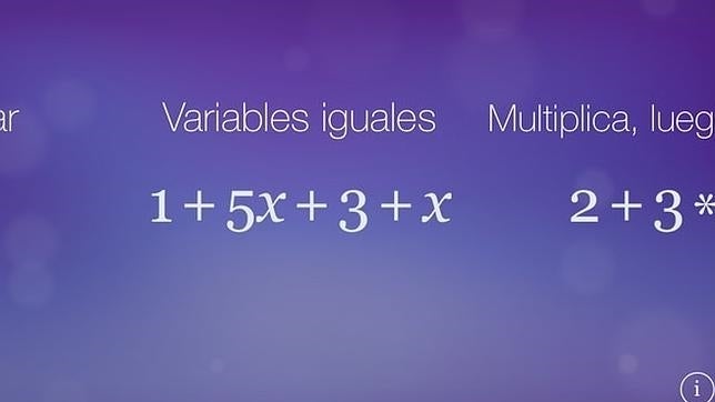 Esta aplicación es ideal para aprender álgebra y resolver los problemas matemáticos. Incluye: simplificación, igualación de términos, conmutatividad, orden de operaciones, factorización, números primos, entre otras cosas. Está disponible para el sistema operativo iOS. Una similar se puede encontrar en Google Play.