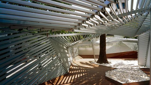 Destino, Heliópolis, barrio residencial sevillano de chalés blancos y radiantes. Carmen Ortega Sastre, una ejecutiva madrileña, se puso en manos del prestigioso estudio de arquitectura MGM para crear un hotel de líneas contemporáneas, «culto y cosmopolita», con una decoración de aluminio en el exterior y madera en las paredes y suelos, minimalismo cálido en el interior.