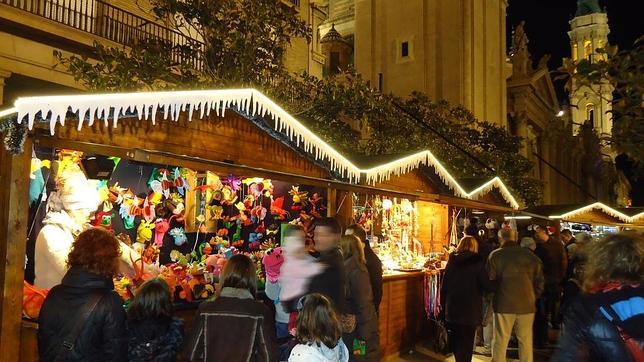 Turismo de Zaragoza El principal motivo para visitar este mercadillo es su ubicación, en la impresionante plaza del Pilar. La basílica del Pilar, las luces navideñas, los puestos de madera y el calor de la gente, hacen de este espacio un lugar sencillamente encantador. Otro valor añadido es que aquí, además de objetos de decoración, también podemos adquirir dulces típicos. En este mismo espacio, además, podemos ver un belén a tamaño real.