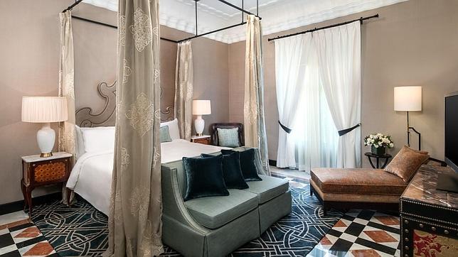 Ava Gardner, la madre del rey Juan Carlos, el príncipe Carlos de Inglaterra con Diana de Gales, Pierce Brosnan y Brad Pitt se han alojado en la Suite Real del hotel Alfonso XIII, una habitación palaciega de 140 metros con arcos moriscos, suelos de mármol y muebles de museo, como un bargueño de nácar regalo del Aga Khan. El dormitorio principal, con paredes revestidas de seda adamascada, está presidido por una cama con dosel del que penden por los cuatro costados colgaduras de lino bordadas. El que no se duerme aquí, entre sábanas de 200 hilos, edredones de plumas y una selección de almohadas de lo mismo, arrullado por las palomas que zurean en los vecinos jardines de los Reales Alcázares, es porque no quiere dormir. El precio (desde 1.780 euros) incluye además el transfer al aeropuerto (ida y vuelta) y el disfrute de las atenciones de baño de Hermés.