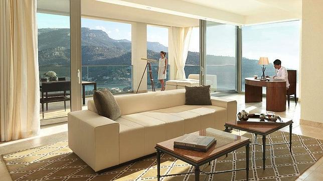 De día, ofrece unas vistas hipnotizadoras del mar radiante y del faro de Cap Gros, que descuella sobre un acantilado cercano. De noche, un telescopio invita a observar las estrellas. Hasta la bañera está colocada de forma que, por encima de las burbujas y los botecitos de Bulgari, se vea la bahía del Port de Sóller a través de los enormes ventanales. El huésped no necesita salir de la Suite Observatorio del hotel Jumeirah Port Sóller ni para comer. No hay problema, porque esta superhabitación de 157 metros tiene hasta su propia cocina, donde uno de los cocineros del hotel puede preparar un fantástico menú discretamente. El precio mínimo, por día, es de 2.353 euros.