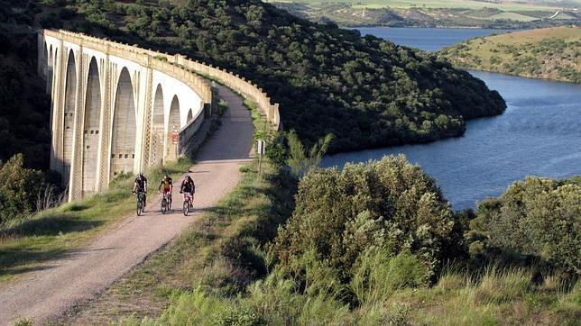 De nuevo nos encontramos ante una vía por la que jamás llegó a pasar un tren. Esta excepcional ruta, de 36 kilómetros, sigue paralela a las orillas de numerosos ríos. Caminando por ella o subidos en nuestra bicicleta atravesaremos una treintena de túneles iluminados y hasta cuatro viaductos metálicos así como lugares tan espectaculares como el peñón de Zaframagón, una de las reservas de buitres más pobladas de Europa. El camino cuenta con un tramo asfaltado (15 kilómetros) y el resto de tierra compactada, con algunas zonas de pendiente. La ruta está recomendada para todos los públicos.
