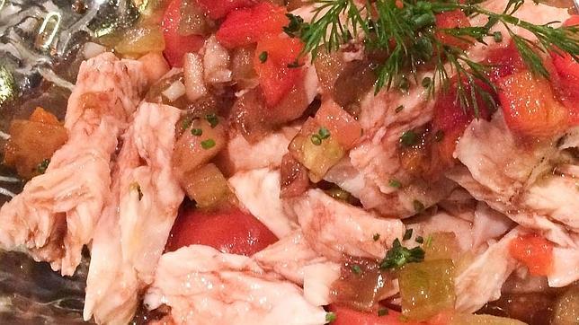Un dúo sin duda que se puede llevar muchos premios. La ventresca es la parte más jugosa y sabrosa del bonito. El contraste que le aporta los pimientos del piquillo es sin duda todo un acierto. Una forma cómoda de presentarlo es poniendo ambos ingredientes dentro de un pequeño pan blanco poco cocido para que se empape bien con los jugos de ambos alimentos.