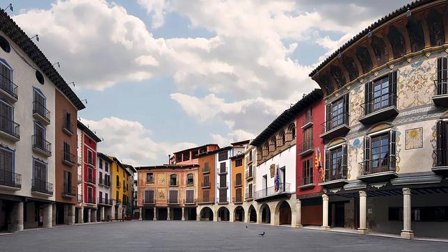 «¡Caramba, qué rico sabor tiene esta plaza!». Eso dijo el pintor Ignacio de Zuloaga al ver la Plaza Mayor de Graus, que luego trasladaría a uno de sus lienzos. Rodeada de soportales y nobles casas de alegres colores, tomó su forma actual en el siglo XVI y ha sido escenario de ferias y mercados, corridas e infinitas fiestas. Aquí es donde, durante las fiestas patronales (del 12 al 15 de septiembre), se ejecutan los famosos dances (el baile de las Espadas y el de las Cintas) y se representa la Mojiganga, un espectáculo que repasa en clave satírica todo lo que ha sucedido a lo largo del año.