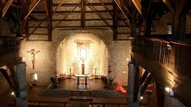 En España hay cientos de oratorios y ermitas acondicionados en cuevas, pero lo de Olleros de Pisuerga supera ampliamente el concepto: es toda una iglesia, consagrada a los santos Justo y Pastor, que fue excavada cuan grande es, con sus dos naves y sus bóvedas apuntadas, a fuerza de pico en el interior de un cerro de roca arenisca al lado mismo del pueblo. Requiere mucho esfuerzo y tesón dejar hueca una montaña. Probablemente, los que empezaron a picar fueron monjes mozárabes que huyeron en el siglo IX de los musulmanes, y luego la obra se prolongó hasta adquirir, ya en el XII, su tamaño y su traza románica. Cuatro pilares separan las dos naves, pero son decorativos, como las bóvedas, porque la roca excavada se sostiene sola. Todo está labrado como si fuera funcional, hasta los falsos arcos fajones que refuerzan las simuladas bóvedas. Más que una obra de arquitectura, la iglesia es una escultura. Mejor visitarla al atardecer, cuando el penúltimo sol, entrando por la puerta y las ventanas, arranca destellos dorados de la roca arenisca.