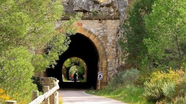 vías verdes Situada en la antigua vía de ferrocarril que unía Tortosa y las Tierras del Ebro con Aragón, transcurre por bosques solitarios y túneles cercanos a lugares como Alcañiz, escenario de las Guerras Carlistas o la estación de Torre del Compte, hoy convertido en hotel y restaurante en ruta. A lo largo de nuestro camino atravesaremos paisajes agrícolas -donde los olivares, almendros y vides son protagonistas- así como zonas boscosas de pinos. La vía es de unos 30 kilómetros aproximadamente que podemos recorrer a pie en siete horas o, en bicicleta, en tres. Debido a los cambios de rasante, la ruta sería de una dificultad media.