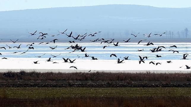 Ánsares comunes en las lagunas de Villafáfila - EFE/Mariam A. Montesinos La reserva natural de las Lagunas de Villafáfila, un espacio natural que ocupa más de 32.000 hectáreas del norte de la provincia de Zamora, suele acoger en estas fechas hasta 2.000 ejemplares de grullas. Esta zona es también un reino para avutardas (más de 2.000 ejemplares en la época de cría), ánades reales o azulones, patos cuchara, la cerceta común, el ánade silbón, la focha, el tarro blanco, la avefría, el porrón común, porrón moñudo, la gaviota, el ánade friso, y el ánsar común (entre 15.000 y 20.000 ejemplares). En total, estos meses puede haber aquí más de 30.000 aves.