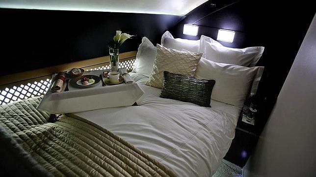 La cama doble de Singapore Airlines Duchas con hidromasaje, menús confeccionados por grandes chefs (Paco Roncero, Toño Pérez, Dani García o Ramón Freixa...), carta de vinos con decenas de referencias, buffet abierto permanentemente, amenities de Givenchy, neceser de Salvatore Ferragamo, colonia de Ermenegildo Zegna, 500 canales de TV y entretenimiento, cama de 150 cms. de ancho, carta de almohadas, pijama, suite privada, vestidor, barman, servicio de niñera para los más pequeños... No es un nuevo hotel de lujo que se acabe de abrir, son algunas de las cosas que pueden disfrutarse a 10.000 metros de altura en las más sofisticadas clases de lujo de algunas aerolíneas. Aunque abunde el «low cost», también los servicios de lujo y el «hight cost» tienen su hueco entre los viajeros. El buscador de vuelos y hoteles Jetcost (www.jetcost.es) ha hecho un ranking de las aerolíneas con los servicios más exclusivos del mundo. Estos son, para sentir en envidia, o para probarlos.