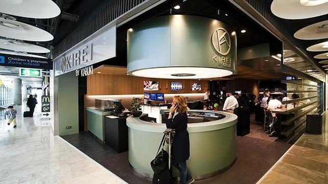 En España no hay ningún aeropuerto que esté a la altura gastronómica de los mencionados anteriormente, pero hay destacar tres grandes restaurantes que se encuentran en todas las listas de «mejores restaurantes de aeropuerto del mundo», el primero se encuentra en la terminal 4 del aeropuerto Adolfo Suárez Madrid-Barajas, El Kirei by Kabuki, Japón y Mediterráneo, unidos por la gastronomía. Con un «show cooking» que los cocineros realizan frente al cliente durante la elaboración al momento de los platos. La cocina está asesorada por el chef Ricardo Sanz del grupo Kabuki, que cuenta actualmente con tres estrellas Michelin. Kabuki ofrece especialidades japonesas típicas de un sushi bar combinadas con los platos típicos españoles, famosos son sus nigiris de hamburguesa o de huevo frito. Sin olvidar algunas novedades como el plato combinado de atún picante con patatas fritas y huevo. Existe servicio take away para todos aquellos pasajeros que no dispongan de mucho tiempo y quieran degustar la comida en el avión.